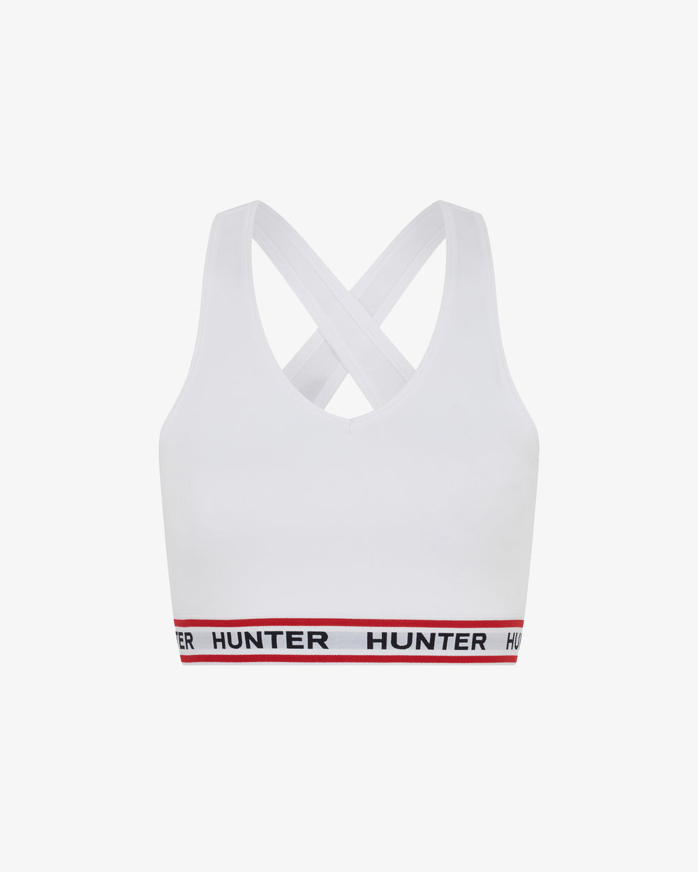 Crafted for everyday wear, the bralette silhouette has been introduced to Hunter's collection. Made with 95% organic cotton and 5% elastane, this style is the ultimate in comfort. Featuring a crossover back design, this pull on silhouette features the iconic Hunter branding to the hemband.