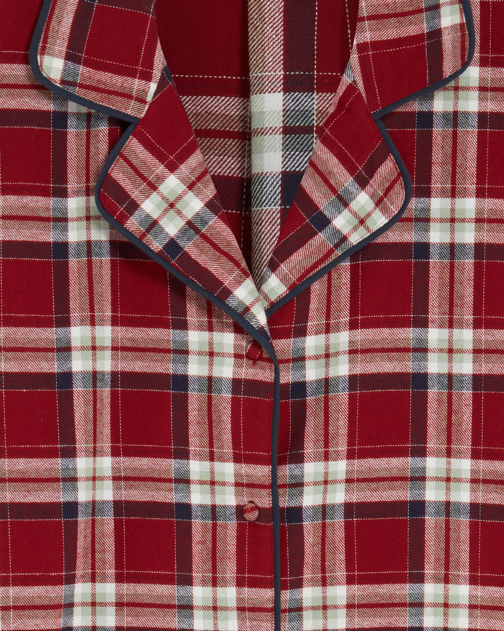 Inspired by Hunter’s archives, these long sleeve check pyjamas from the women’s nightwear collection are crafted from a super soft cotton flannel that exudes comfort and style. Signature design details such as contrast piping and tonal fabric buttons make them instantly recognisable as Hunter. Iconic Hunter taped webbing in the inside collar complete this style. Each pair come wrapped in a branded bellyband for a premium gifting opportunity.