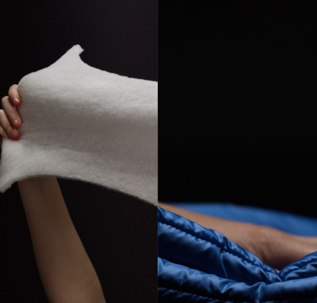 Insulation fibres are filled and secured inside the outerwear to create a warm layer.