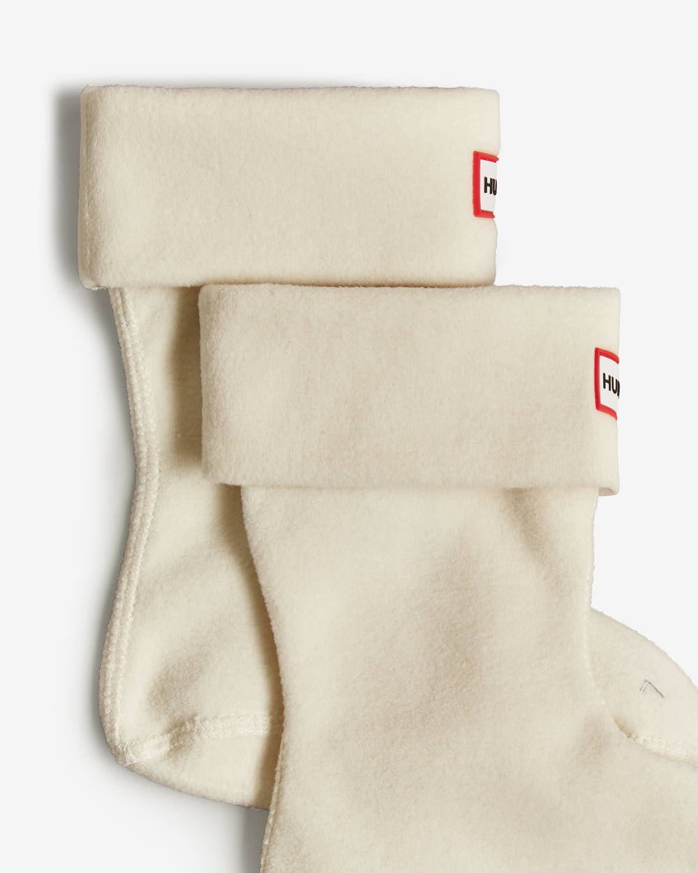 Redesigned with left and right foot shaping, these white boot socks offer the most enhanced fit and comfort and will fit easily inside the Original Kids Wellington Boot. Crafted with a 100% recycled polyester leg and fold-down cuff, they feature a Hunter Original logo.
