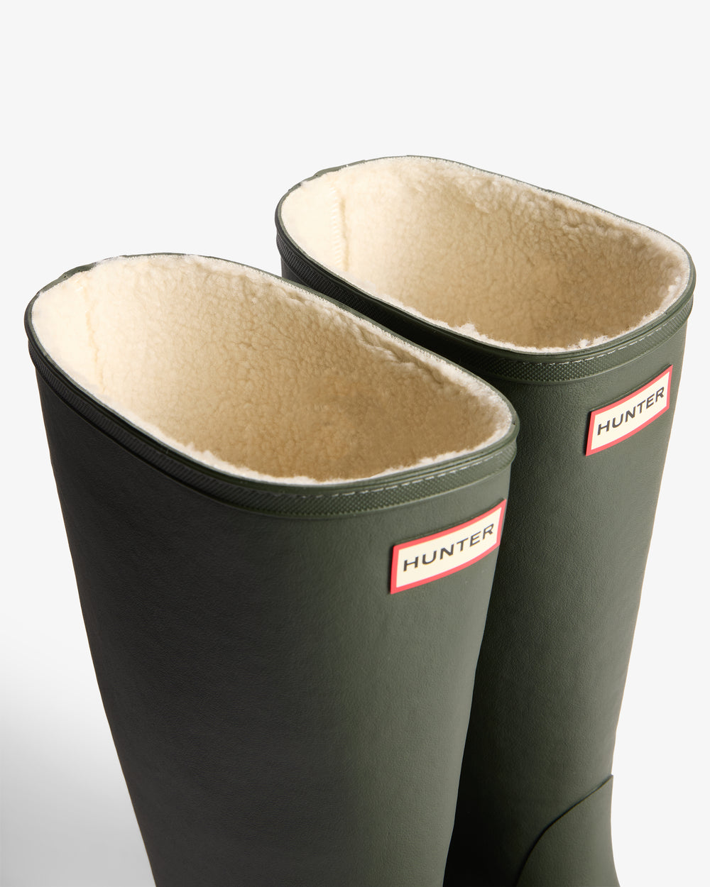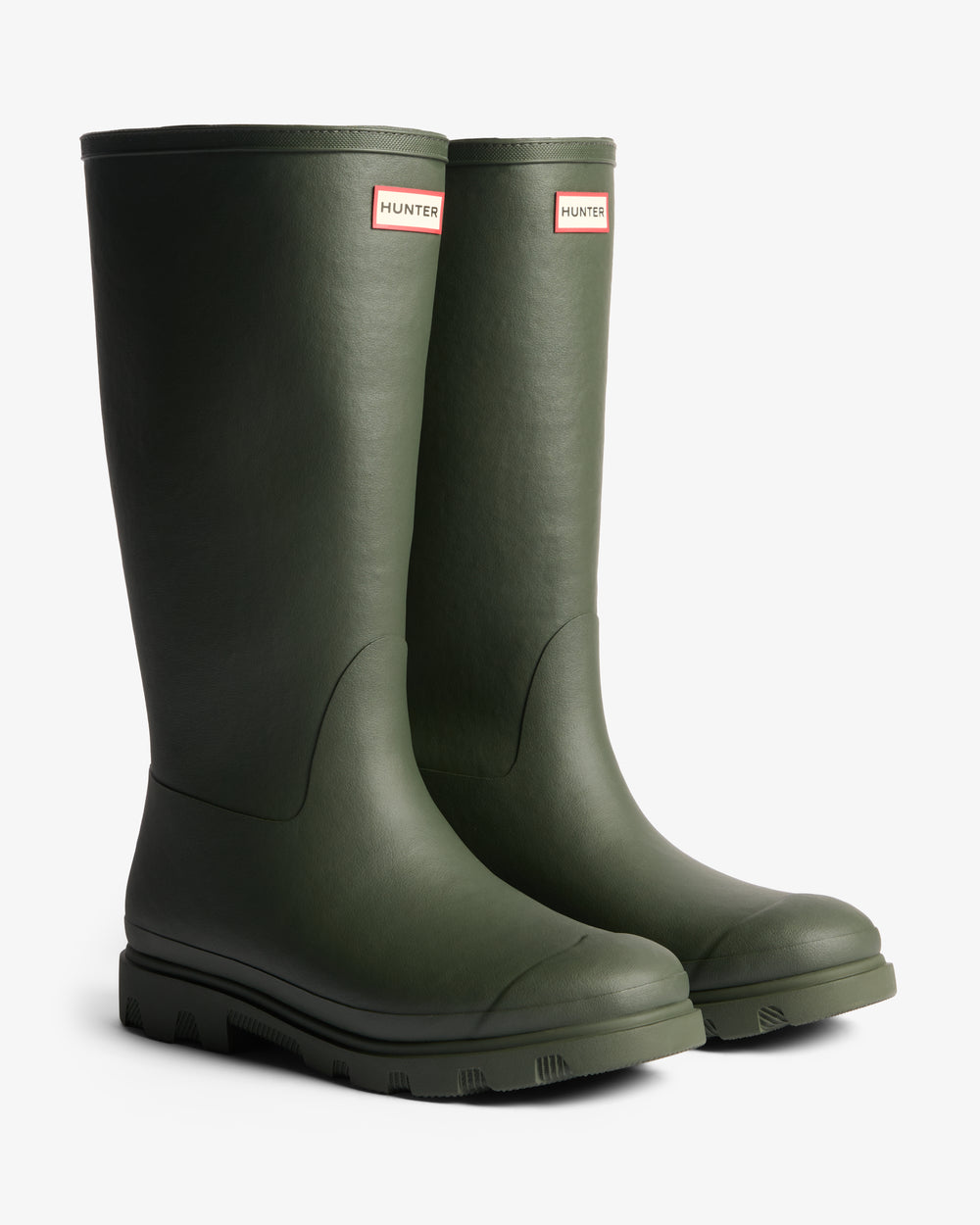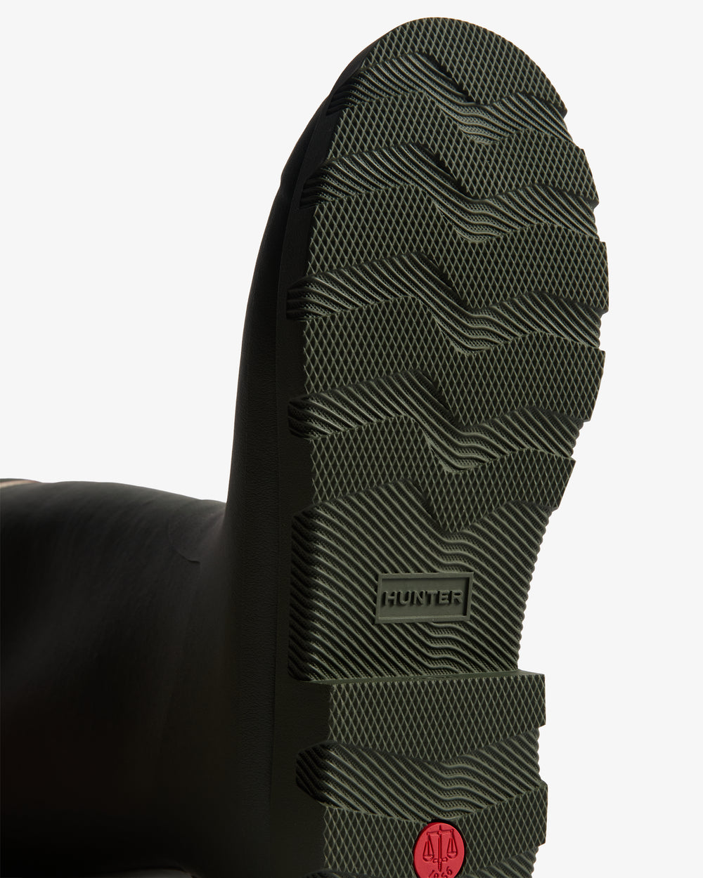 Introducing the newest addition to the Hunter family, our fully waterproof Unisex Downpour Insulated Tall Boot. With a sleek upper design and a lightweight moulded outsole, the unique tread has taken influence from natural shapes found in landscapes. Handcrafted and finished with a heritage topbind and insulated lining, this unisex winter green riding boot has been engineered to have a more modern and voluminous calf fit.